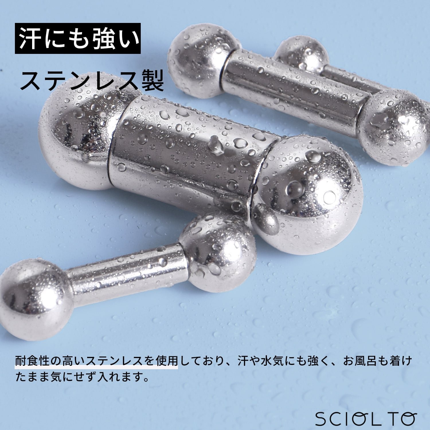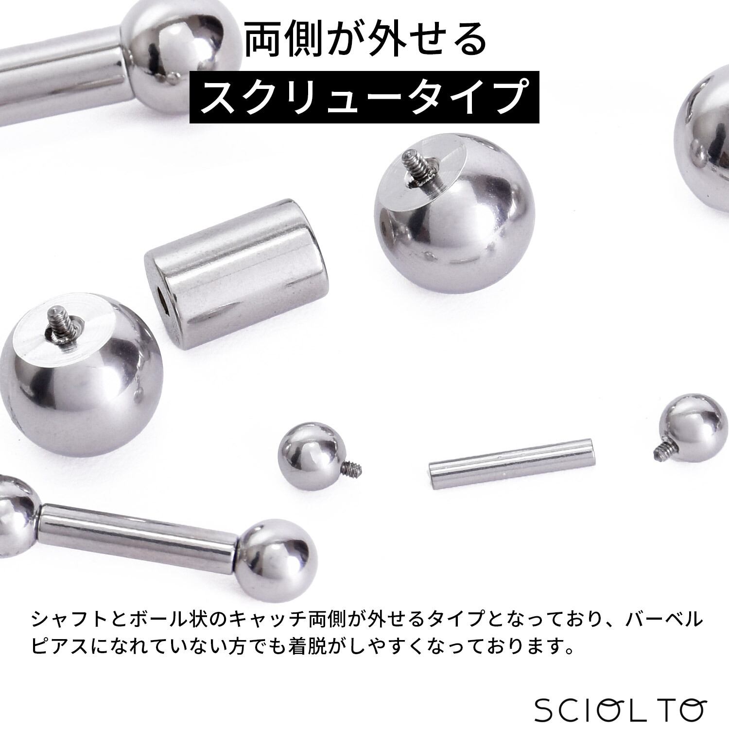 シャフトとボール状のキャッチ両側が外せるタイプとなっており、バーベルピアスに慣れていない方でも着脱がしやすくなっております。