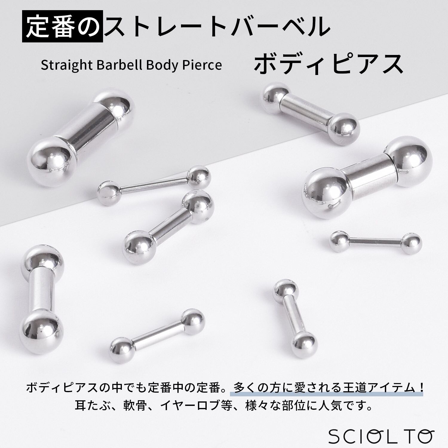 ストレートバーベル ボディピアス [12G~00G] 拡張 耳たぶ 軟骨ピアス ステンレス
