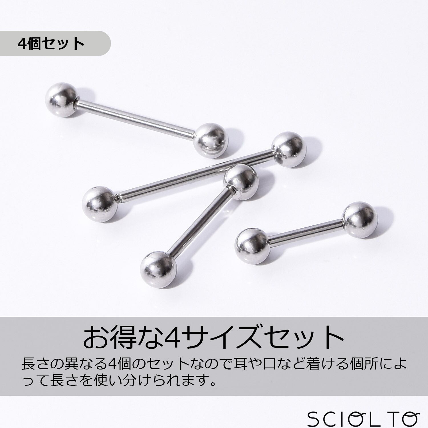 ボディピアス ストレートバーベル [14G 4サイズ 4本セット] 軟骨ピアス 耳たぶ 口ピ 鼻ピ ステンレス メンズレディース [SCIOLTO(ショルト)]