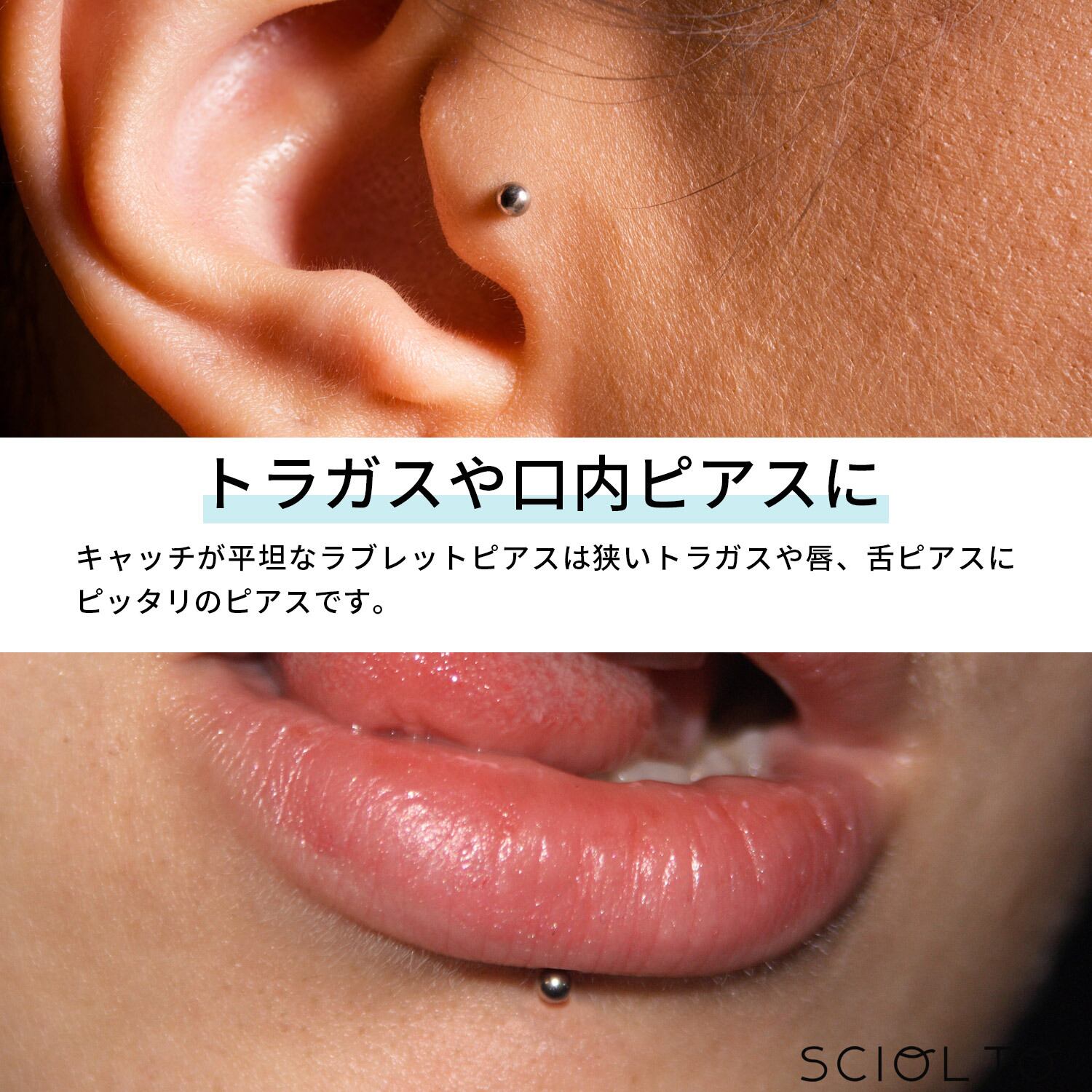 舌ピ、口ピ、ラブレット、リップなど様々な部位に着用出来ます。 もちろん定番の耳たぶ、イヤーロブ、軟骨、トラガス、アンチトラガス、ヘリックス、インナーコンク、アウターコンクの部位にも着用出来ます。