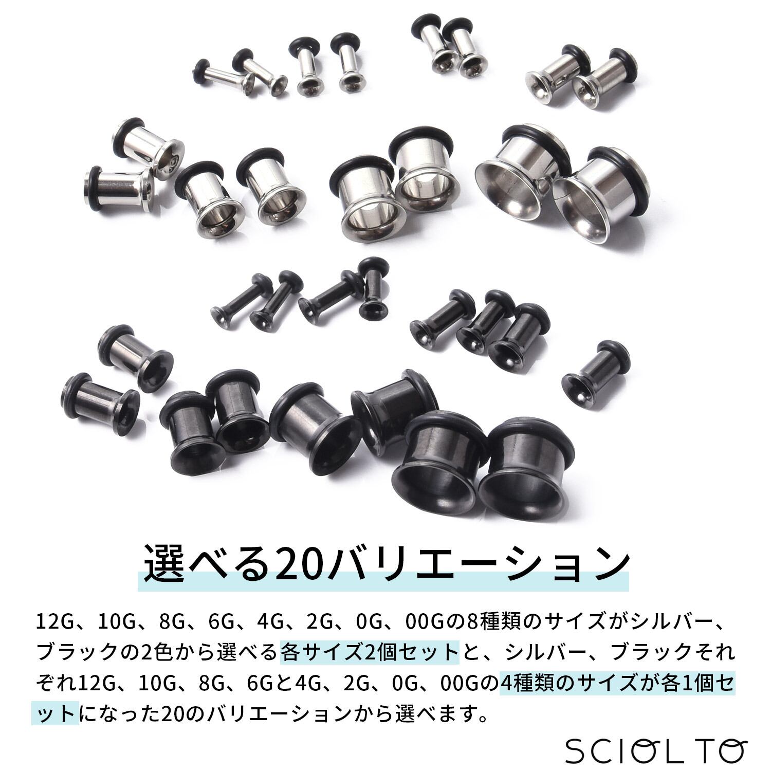 各サイズ2個セット、または12G、10G、8G、6Gのセットと4G、2G、0G、00Gのセットからご自身のピアスゲージサイズに合わせてお選び頂けます。
