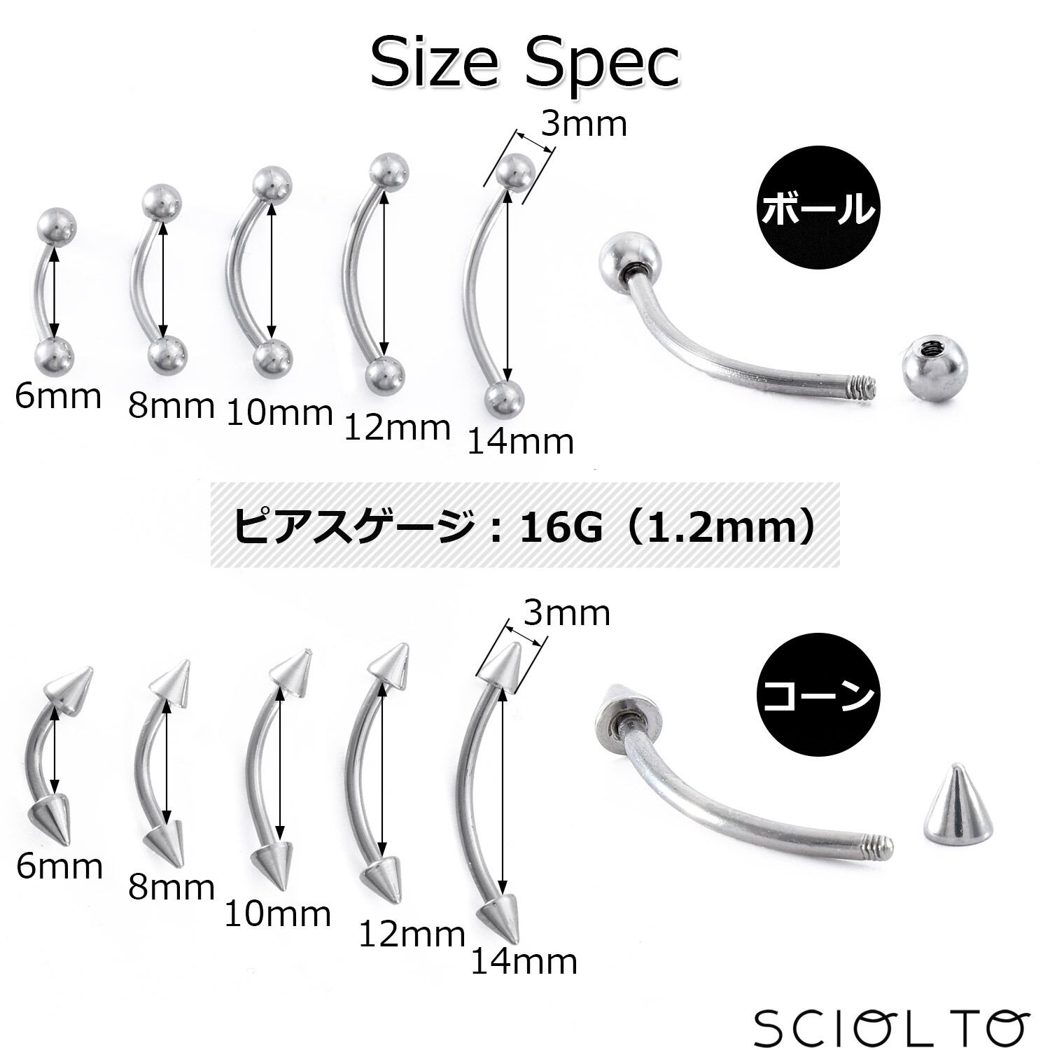 [コーンタイプ] キャッチ:3mm シャフト:6mm、8mm、10mm、12mm、14mm ピアスゲージ:16G(1.2mm)