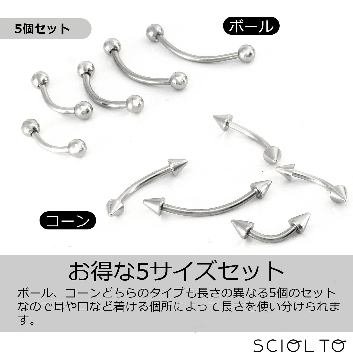 ボディピアス バナナバーベル [5本セット] リップ ラブレット 軟骨ピアス 耳たぶ 鼻ピ 口ピ ステンレス メンズレディース [SCIOLTO(ショルト)]