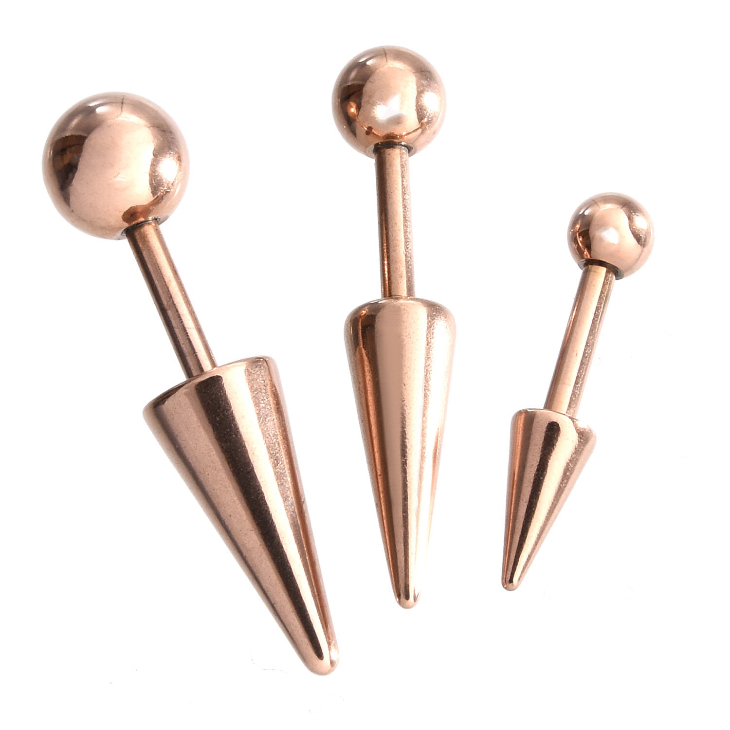 ストレートバーベルのシャフトに大きめのコーンとボールを装着したピアス。耳たぶ、イヤーロブ、アンテナ、ヘリックス、トラガス、ラブレット、軟骨等様々な箇所でご使用頂けます。