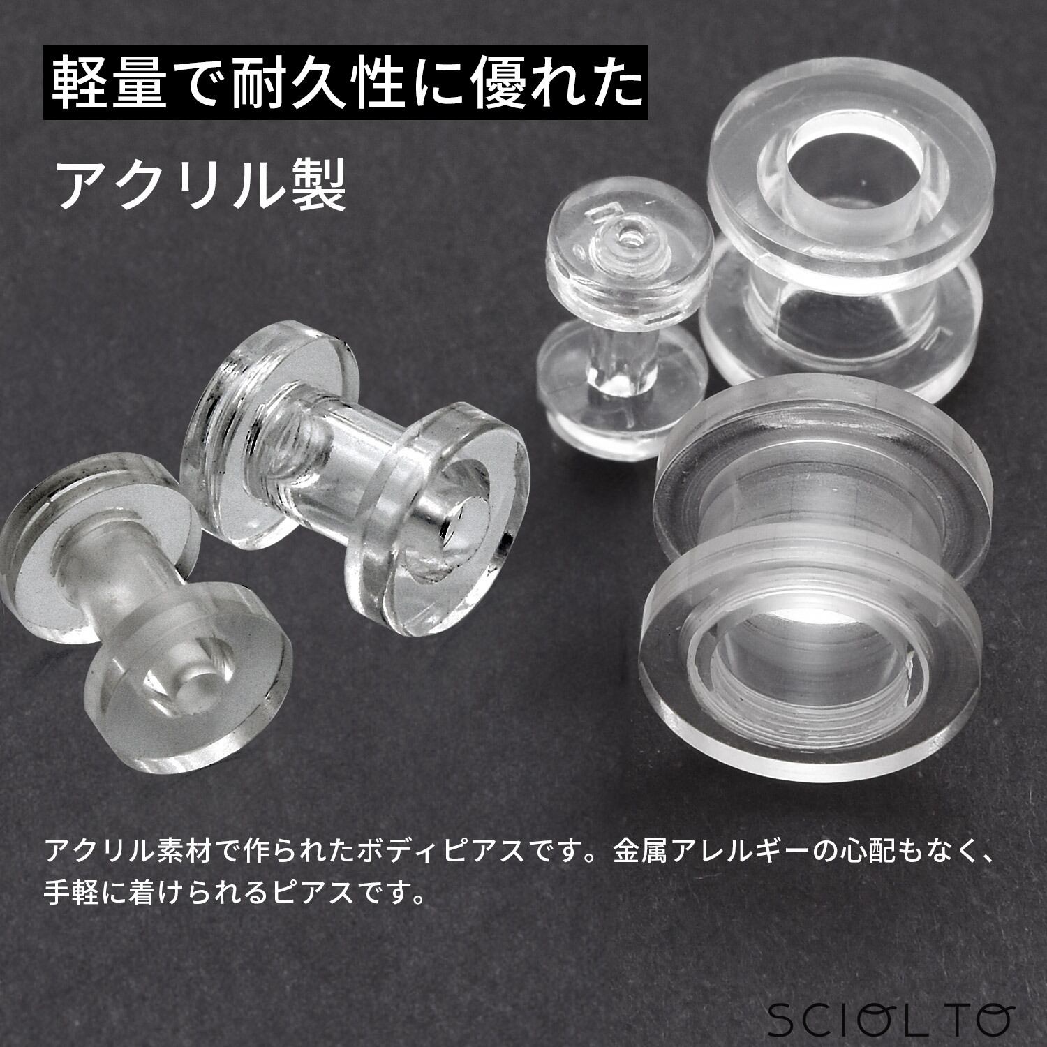 アクリル ボディピアス [ネジ式] 透明 シンプル ピアス メンズ レディース 耳たぶ イヤーロブ [SCIOLTO(ショルト)]