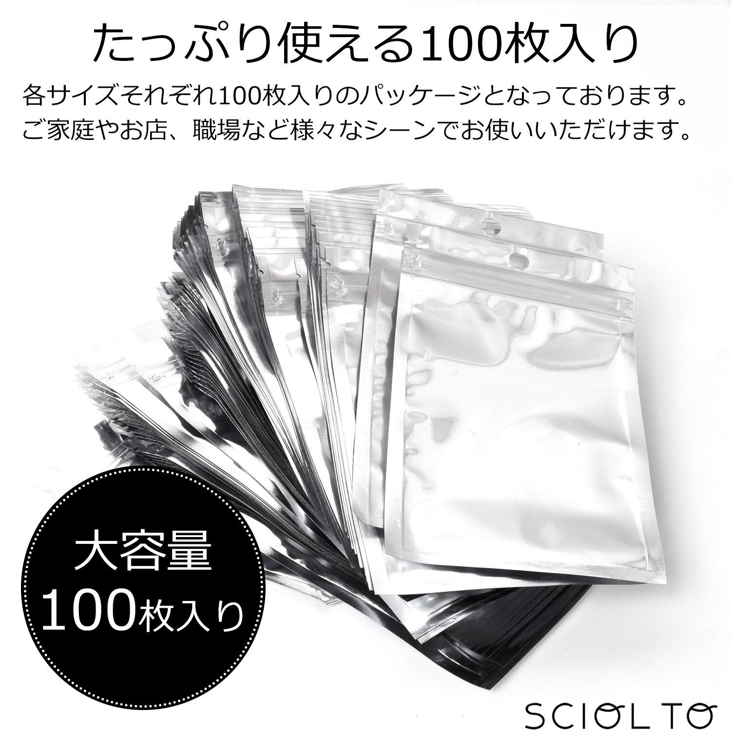 (横10cm×縦17.5cm) アルミ袋 100枚入り チャック付き 保存袋 ジッパー付き ビニール袋 収納袋 大 小 (横10cm×縦17.5cm) [SCIOLTO(ショルト)]